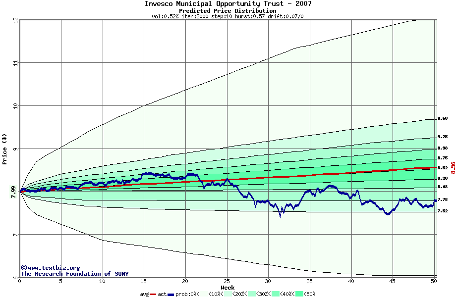 The following graph plots the year-to-date performance of the stock for 2007 compared to the probability calculated by a random walk model.