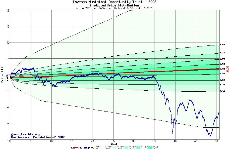 The following graph plots the year-to-date performance of the stock for 2008 compared to the probability calculated by a random walk model.