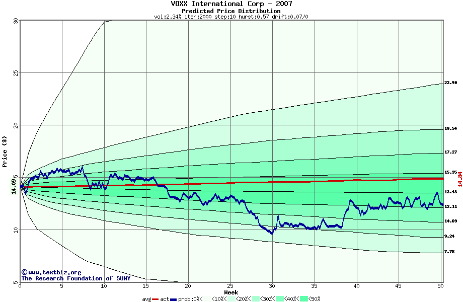 The following graph plots the year-to-date performance of the stock for 2007 compared to the probability calculated by a random walk model.