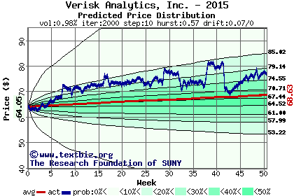 The following graph plots the year-to-date performance of the stock for 2015 compared to the probability calculated by a random walk model.