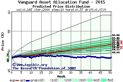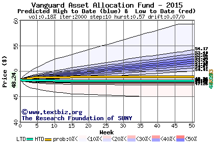 The following graph plots the year-to-date performance of the stock for 2015 compared to the probability calculated by a random walk model.