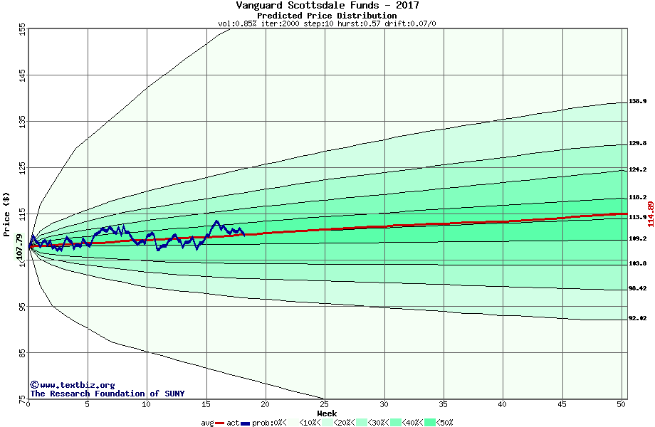 The following graph plots the year-to-date performance of the stock for 2017 compared to the probability calculated by a random walk model.