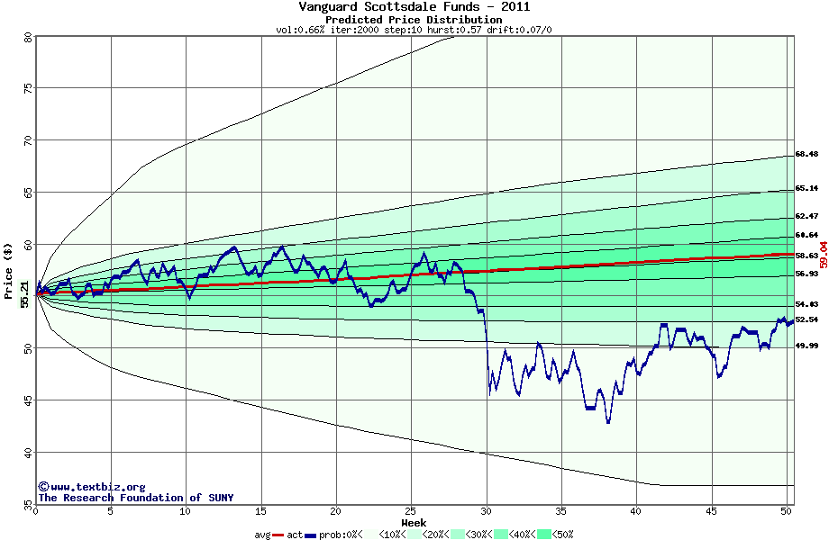 The following graph plots the year-to-date performance of the stock for 2011 compared to the probability calculated by a random walk model.