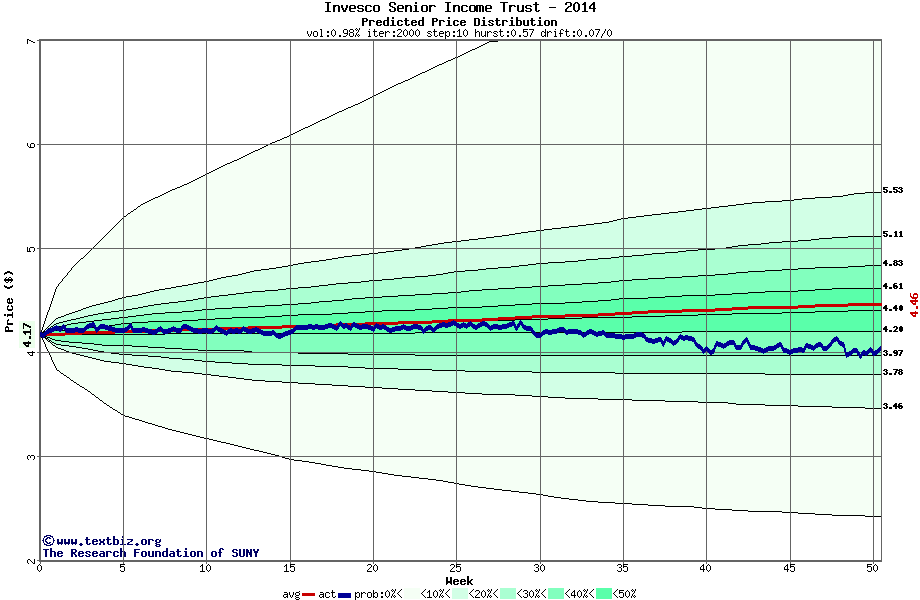 The following graph plots the year-to-date performance of the stock for 2014 compared to the probability calculated by a random walk model.