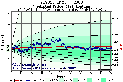 The following graph plots the year-to-date performance of the stock for 2003 compared to the probability calculated by a random walk model.