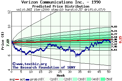 The following graph plots the year-to-date performance of the stock for 1990 compared to the probability calculated by a random walk model.