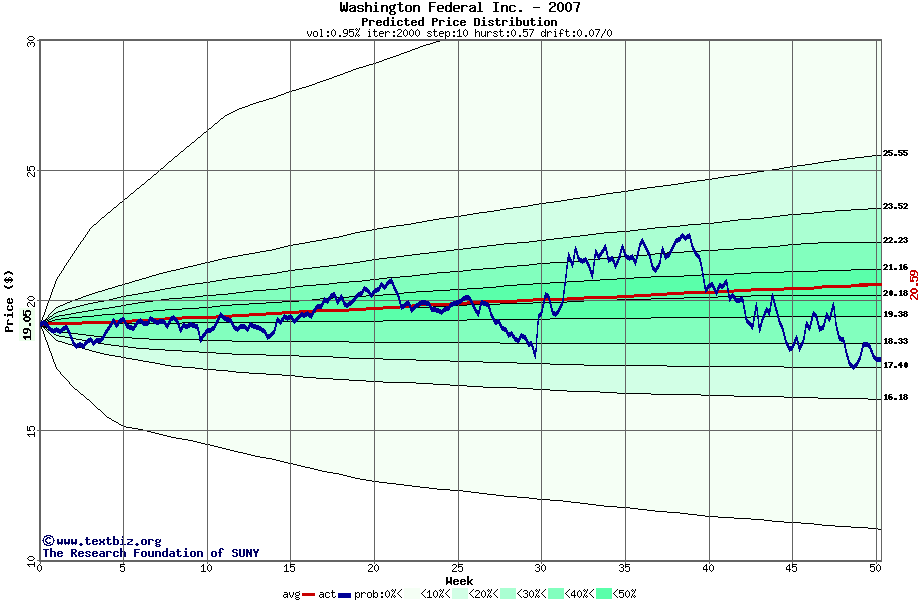 The following graph plots the year-to-date performance of the stock for 2007 compared to the probability calculated by a random walk model.