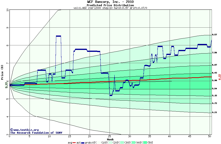 The following graph plots the year-to-date performance of the stock for 2010 compared to the probability calculated by a random walk model.