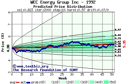 The following graph plots the year-to-date performance of the stock for 1992 compared to the probability calculated by a random walk model.
