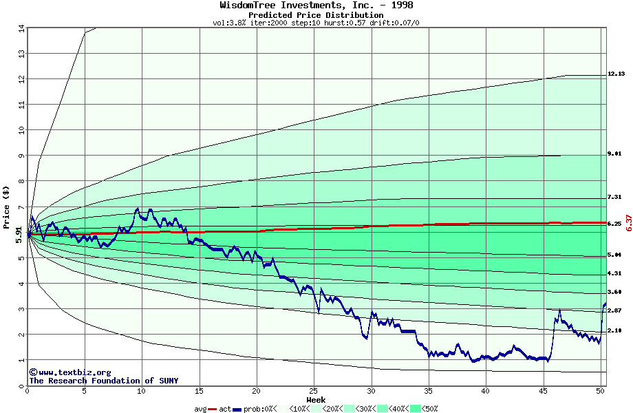 The following graph plots the year-to-date performance of the stock for 1998 compared to the probability calculated by a random walk model.