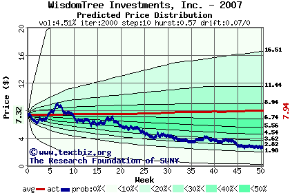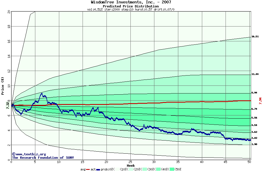 The following graph plots the year-to-date performance of the stock for 2007 compared to the probability calculated by a random walk model.