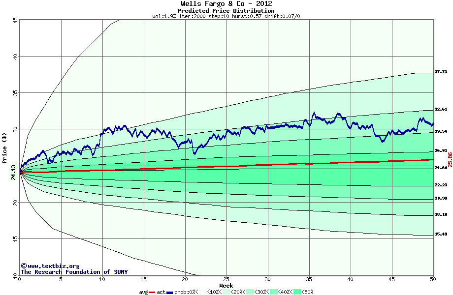 The following graph plots the year-to-date performance of the stock for 2012 compared to the probability calculated by a random walk model.