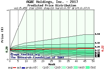 The high to date and low to date prices of the stock plotted against a random walk model for 2017 (what's this?).