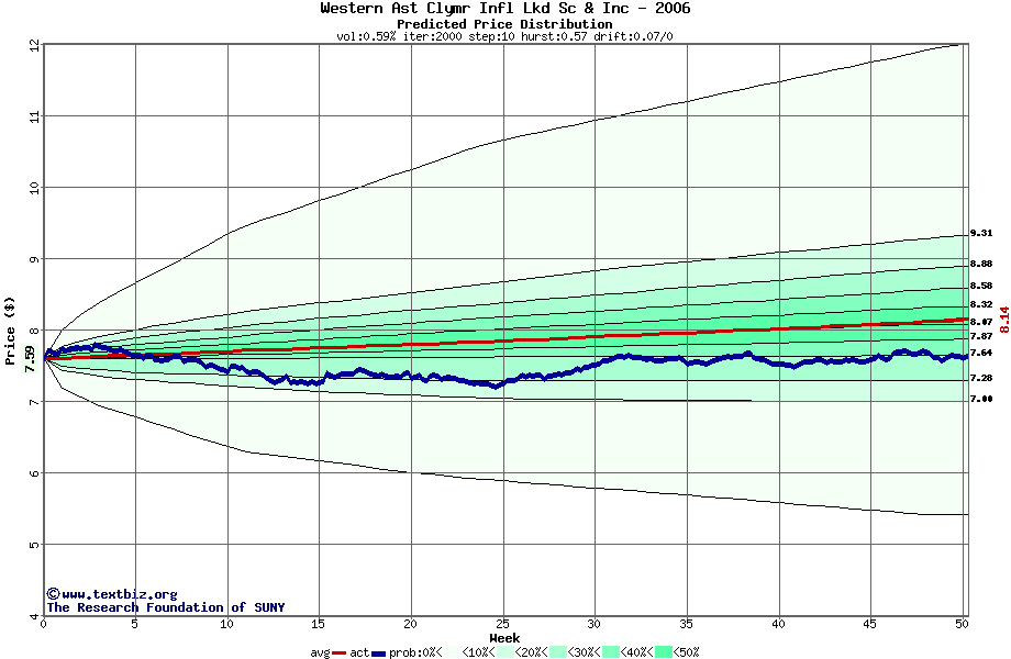 The following graph plots the year-to-date performance of the stock for 2006 compared to the probability calculated by a random walk model.