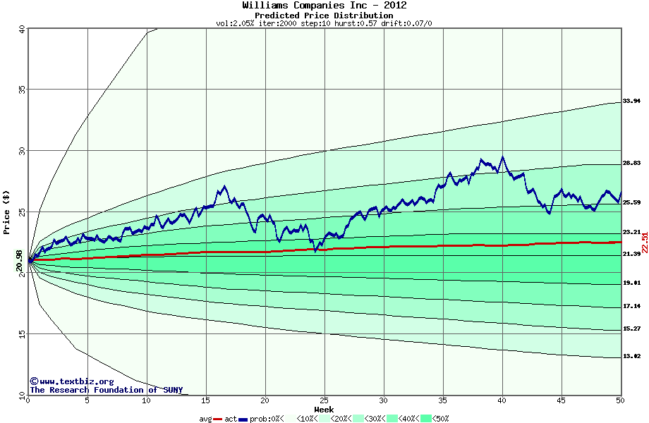 The following graph plots the year-to-date performance of the stock for 2012 compared to the probability calculated by a random walk model.