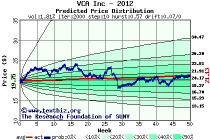 The following graph plots the year-to-date performance of the stock for 2012 compared to the probability calculated by a random walk model.