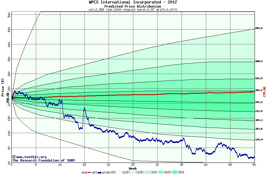 The following graph plots the year-to-date performance of the stock for 2012 compared to the probability calculated by a random walk model.