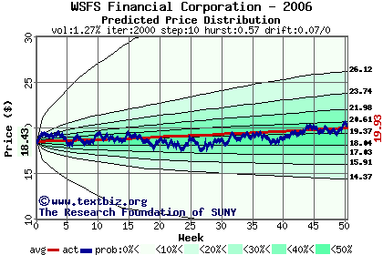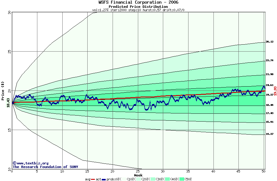 The following graph plots the year-to-date performance of the stock for 2006 compared to the probability calculated by a random walk model.