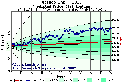 The following graph plots the year-to-date performance of the stock for 2013 compared to the probability calculated by a random walk model.