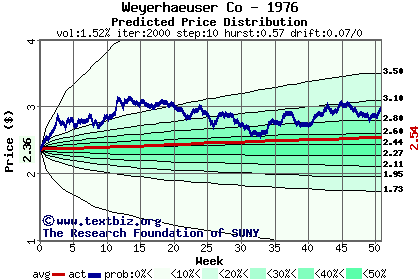 The following graph plots the year-to-date performance of the stock for 1976 compared to the probability calculated by a random walk model.