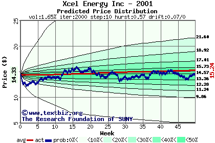 The following graph plots the year-to-date performance of the stock for 2001 compared to the probability calculated by a random walk model.