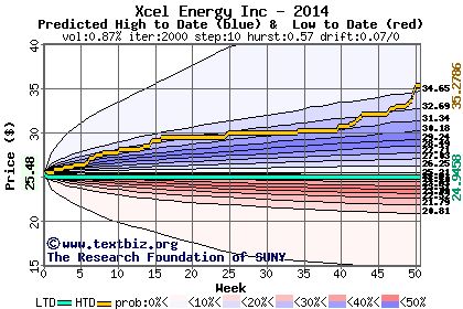 The following graph plots the year-to-date performance of the stock for 2014 compared to the probability calculated by a random walk model.
