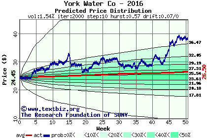 The following graph plots the year-to-date performance of the stock for 2016 compared to the probability calculated by a random walk model.