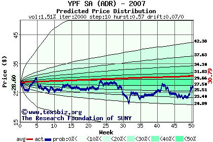 The following graph plots the year-to-date performance of the stock for 2007 compared to the probability calculated by a random walk model.