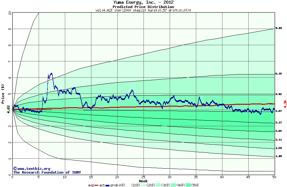 The following graph plots the year-to-date performance of the stock for 2012 compared to the probability calculated by a random walk model.