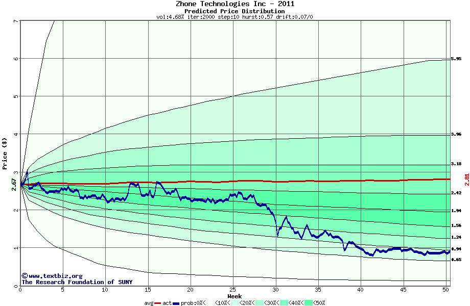 The following graph plots the year-to-date performance of the stock for 2011 compared to the probability calculated by a random walk model.