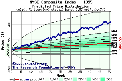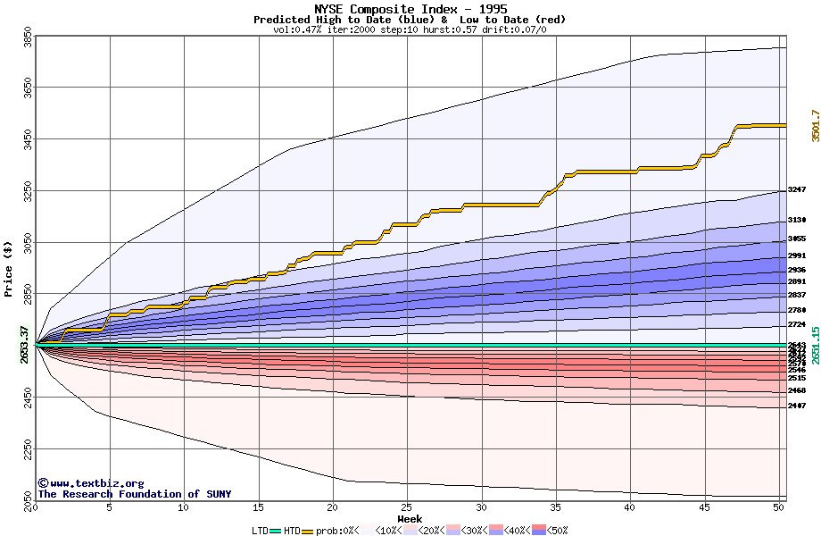 The following graph plots the year-to-date performance of the index for 1995 compared to the probability calculated by a random walk model.