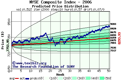 The following graph plots the year-to-date performance of the index for 2006 compared to the probability calculated by a random walk model.