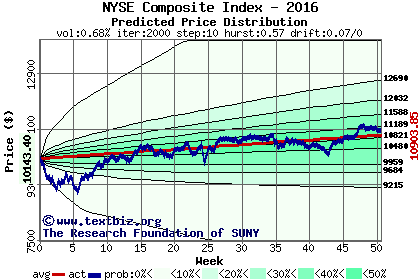 The following graph plots the year-to-date performance of the index for 2016 compared to the probability calculated by a random walk model.