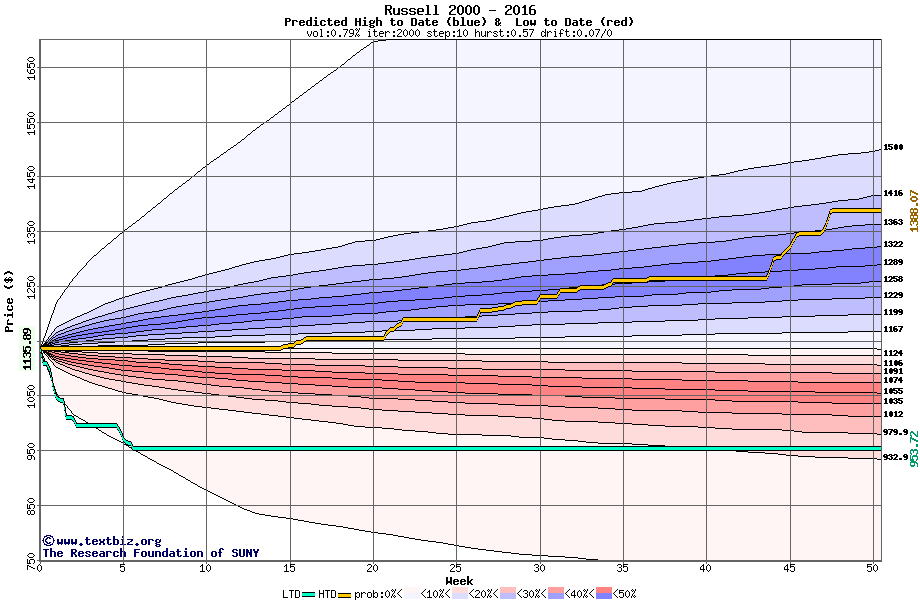 The following graph plots the year-to-date performance of the index for 2016 compared to the probability calculated by a random walk model.